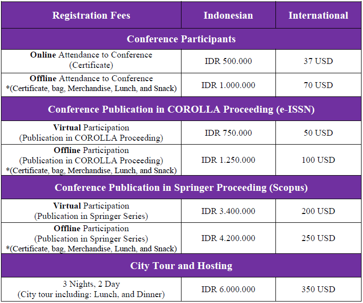All accepted and registered full papers must be presented at the conference. The proceedings of COROLLA 2025 will be published as a Conference Paper in Springer Series (Advances in Science, Technology & Innovation); IEREK Interdisciplinary Series for Sustainable Development, ISSN: 2522-8714; 2522-8722 (Scopus-Indexed Springer Series).
